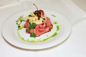 Grande protagonista del menù è però la carne alla griglia, a cui si affianca un’alternativa delicata e gustosa, sempre presente in menù: la tartare di manzo preparata al tavolo, secondo i gusti del cliente.